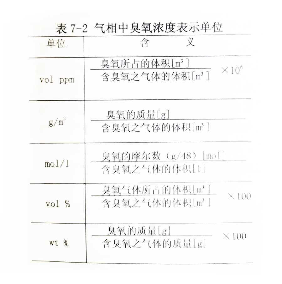 氣相中臭氧濃度表示單位