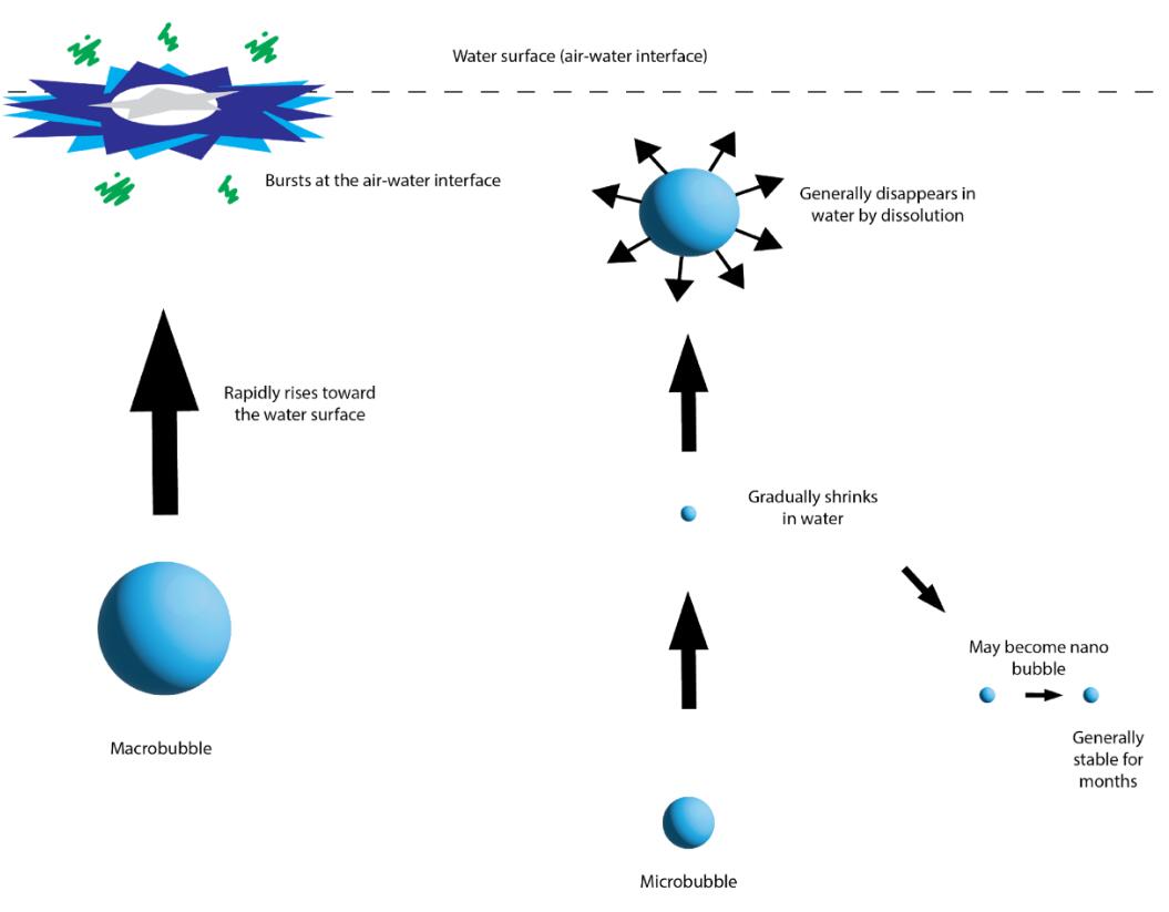 與大氣泡不同,納米氣泡不會由于浮力而上升到水面。與微氣泡不同,納米氣泡不會通過溶解到水中而消失在水中,而是保持納米氣泡(超細)氣泡狀態。在液體中壽命長的納米氣泡會隨機移動,而不是像較大的氣泡那樣向上移動。這種隨機的,有時是橫向的,有時是垂直的,甚至是向下的現象被稱為布朗運動。